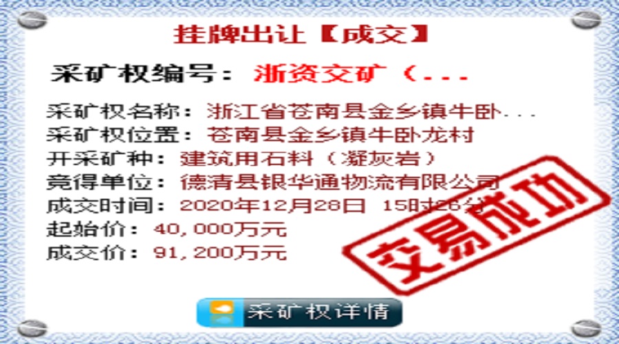 9.12億成交!剛剛有人拍下蒼南這座礦